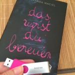 Gestern erreichte mich total süße Überraschungspost vom Lübbe Verlag (bzw. vom dazugehörigen Kinder- und Jugendbuchverlag „Boje-Verlag„)! Das Buch schaut nicht nur klasse aus (Haaaaalllooooo … die Schrift ist PINK! Und das Cover schaut so total used aus!), es hört sich sogar noch supergut an: KLICK Und der Clou ist der (ebenfalls piiiiinke!!) USB-Stick, auf dem nicht …