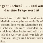 Ein Klick auf den Text bringt euch direkt zum Buch! Ja nu … irgendwann stellt sich vielleicht jeder mal diese Frage oder? Oder kennt ihr die Antwort schon? 😀 Bin gestern an der (äußerst „darmanten“) Leseprobe hängengeblieben: http://amzn.to/1mCcN6q Und ich glaube, damit könnte ich mein Google-Medizin-Studium hervorragend erweitern! hihi Ich hatte diesen Ausschnitt auch bei …