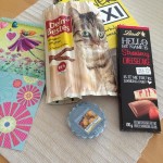Heute erreichte mich dieses Päckchen von Claudia C.: Und schaut mal, habt ihr schon mal so hübsche Luftpolsterumschlags-Verschlussklammerdingens gesehen? Also ich nicht. Könnte man glatt als Ohrringe benutzen hihi: Das Männertaxi zum Signieren – kein Problem! Katzensticks für Jerry (die LIEBT sie! Eigentlich liebt Jerry wohl fast alle Leckerchen hihi) – das ist auch nicht …