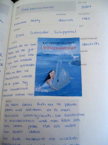Das Lieblingsbuch von Carolin ist Delfinensommer von Katherine Allfrey und so schaut ihr Eintrag aus: