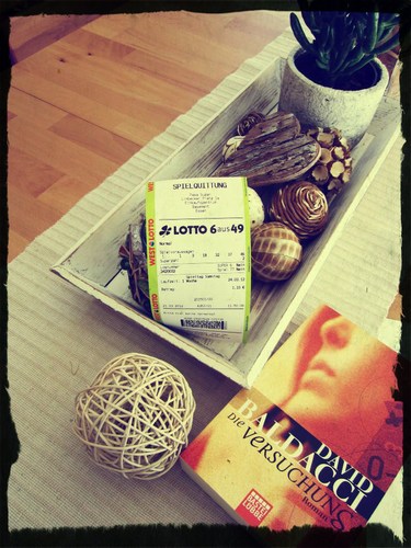 Der Lottoschein macht jetzt nicht nur neugierig auf’s Buch, sondern lässt mich auch leicht hektisch werden. Vor gefühlten 100 Jahren habe ich maaaaaal Lotto gespielt, aber ich habe leider so gar keine Ahnung, was ich nun machen muss. Klar, die Ziehung der Lottozahlen schauen (Wann kommt die?? Und wo??) und dann mit den Zahlen vergleichen und dann einfach in die Lottoannahmestelle gehen und dort die Million abholen? 😀 (Eine Zahl ist übrigens dabei, die ich auch auf jeden Fall „angekreuzt“ hätte, aber ich verrate jetzt nicht, welche hihi). Und muss ich nun nur auf die 6 Zahlen achten und diese Superzahl? Oder hat die Losnummer auch noch irgendeine Bedeutung? Nicht, dass ich da jetzt einen Fehler mache und weiter fröhlich durch’s Leben marschiere und nicht mal ahne, dass sich in der Tat noch irgendwo eine Million tummelt, die sehnsüchtig darauf wartet, von mir in die Arme genommen zu werden). Aber wie auch immer die Ziehung ausfallen wird: Das Los wird auf jeden Fall als Lesezeichen im Buch bleiben! 😉