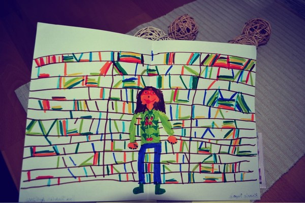 Und dann war da noch diese total süße Bild mit der „kleinen Kossi“ (das soll ich doch sein, oder?) vorm Bücherregal. Auf der Rückseite steht „Kossis Bücherregale“ und „Lena April 2012“. Ich gehe mal davon aus, dass Lena das Töchterchen von Jennifer ist. Wie süß ist DAS bitteschön??Und wie schön schlank ich auf dem Bild bin hihi ♥