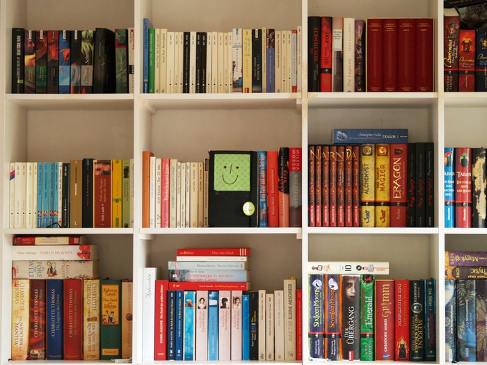 Das Regal sieht super klasse aus und trotz der querliegenden Bücher total ordentlich…Ich wünschte bei mir sähe es so aus…Und das Regal ist sehr schön 🙂 So Fotos könnte ich mir stundenlang ansehen. Schade dass man nicht alle Titel entziffern kann. Aber vieles erkennt man auch so 🙂