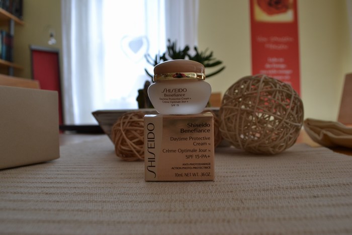 Von Shiseido gab es eine Feuchtigkeitscreme, die Spannungsgefühlen, Elastizitätsverlust und der Bildung von Fältchen vorbeugen soll. Ob’s hilft? Egal … denn ich finde, der Tiegel schaut auf jeden Fall klasse aus: