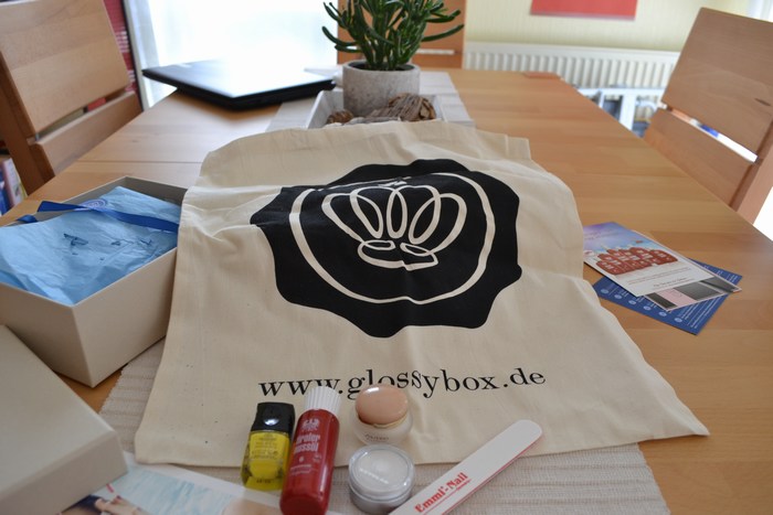 Als Goodie gab es dann diesmal noch eine Glossybox-Stofftasche dazu, die ich auch wunderbar gebrauchen kann. Diese Dinger habe ich immer im Kofferraum meines Pauls, für den Fall, dass ich spontan einkaufen gehe und meinen Korb vergessen habe: