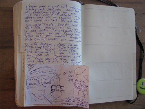 Das ist nicht MEIN Bücherregal, sondern das von Elke, die sich ins Moleskine eingetragen hat 😉