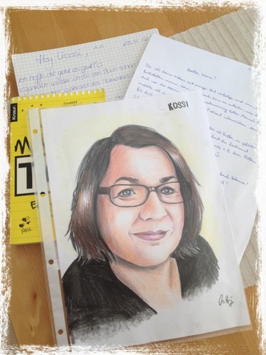 Die liebe Jessy hat mir einen SECHS SEITEN LANGEN BRIEF geschrieben, inkl. Männertaxi zum Signieren. Und Michelle (ich weiß leider nicht, wie alt sie ist) hat mich ziemlich gut gemalt! Ich möchte gar nicht wissen, wie lange sie für das Bild gebraucht hat! Hammer!! DANKESCHÖN! ♥