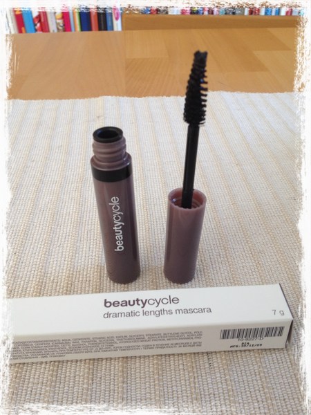 Zum ersten Mal seitdem ich diese Boxen beziehe, habe ich nun endlich auch mal eine Mascara bekommen. Ist zwar doof, dass ich mir erst letzte Woche eine neue gekauft hatte, aber Mascaras kann man doch nie genug im Haus haben, oder? In diesem Fall handelt es sich um eine schwarze Mascara der Marke Beautycycle. Sie soll für maximale Länge sorgen, ist eine Originalgröße mit 7 ml und der Ladenpreis beträgt 13,10 Euro (!) Wie sie sich auf den Wimpern verhält, kann ich noch nicht sagen, da ich heute bereits meine Wimpern getuscht habe und sie somit erst spätestens morgen testen kann: