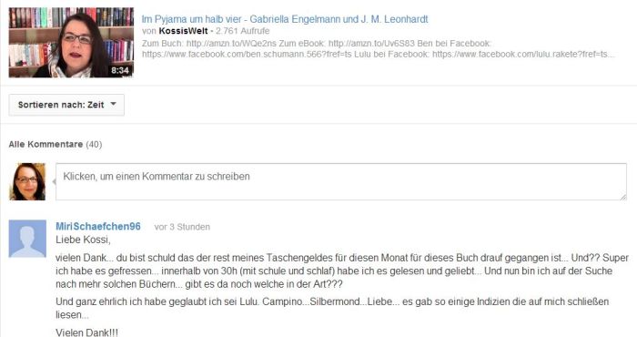 kann sie immer sagen: „Als ich Kossis Buchtippvideo gesehen hab!“ Ich find das so lustig!