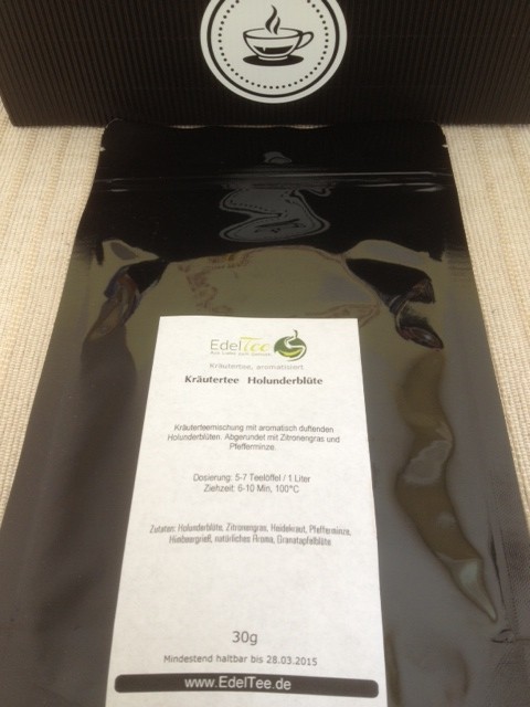 Der Kräutertee Holunderblüte klingt da für mich schon interessanter! Gerade die Mischung aus Holunder und MINZE klingt verlockend! Holunder schmecke ich allerdings gar nicht raus. Was nicht schlimm ist. Viel mehr schmeckt der Tee überwiegend nach Zitronengras. Minze kann ich nur erahnen, aber insgesamt schmeckt der Tee total lecker!