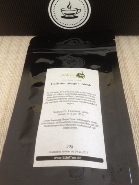 So, mittlerweile hab ich den Tee getrunken und deshalb kommt hier mein Feedback: Er schmeckt sehr mild und zum Glück schmecke ich Mango nicht wirklich raus. Eher Ananas und ein wenig Kirsche. Ist sehr bekömmlich, wie ja so ziemlich alle Rooibos-Sorten. Lecker!