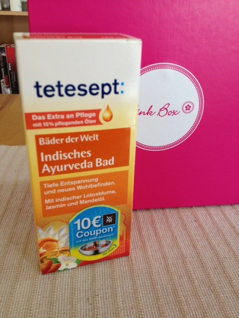 Und wieder kommt das leidige Thema mit der Badewanne. Ich habe immer noch keine, kenne aber Menschen, die eine haben und muss das Badezeugs also wieder abgeben. Aber okay, das kann die PinkBox ja immer noch nicht wissen 😉 Das Indische Ayurveda-Bad kostet 6,49 Euro: