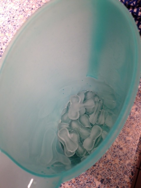 In diese Kanne schüttet man dann langsam den heißen Tee. Die Eiswürfel schmelzen natürlich direkt und der Teewicht schrieb mir, dass durch diesen „Eisschock“ der Tee das Aroma nicht verliert. Die Kanne habe ich dann noch zusätzlich in den Kühlschrank gestellt und den Tee getrunken als er richtig schön kalt war! Man kann das Eis auch als Crush-Eis in die Kanne schütten, aber da ich keinen Crush-Eis-Zubereiter habe, reichte es mir auch auf diesem Wege.