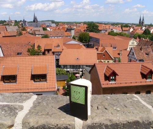 Uuuuuh, beim Besuch des Moleskine Book Journal in Quedlingburg habe ich mir ehrlich gesagt beim Anblick dieses Fotos ein wenig Gedanken gemacht, was passiert wäre, wenn es ein bisschen windig gewesen wäre und Mole hintenüber gekippt wäre :-O