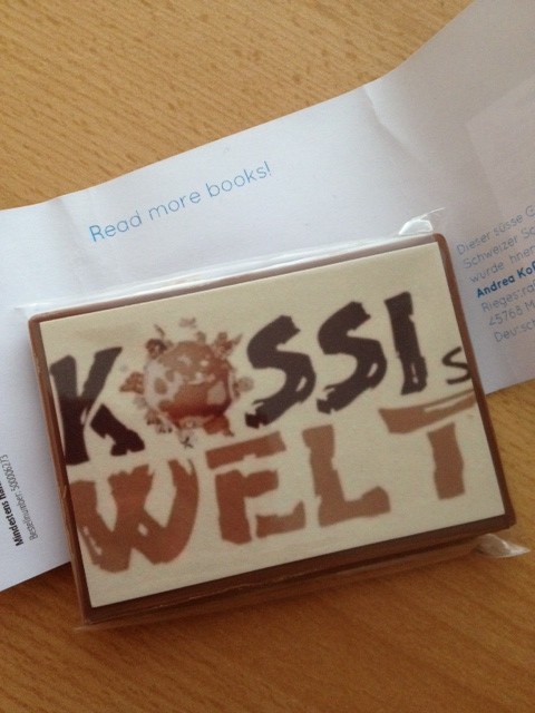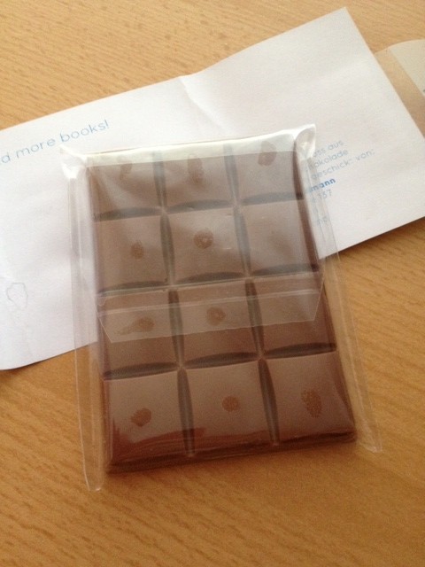 Und wenn man die Banderole abmacht, ist dort im Innenteil die Nachricht. Ich hatte hier nur „Read more books“ reinschreiben lassen, aber man hat wesentlich mehr Platz für richtige Sätze 😉 Als Foto hatte ich dann ja mein Logo genommen und ich finde, es schaut richtig klasse aus. Zum Anbeißen, oder? 😀
