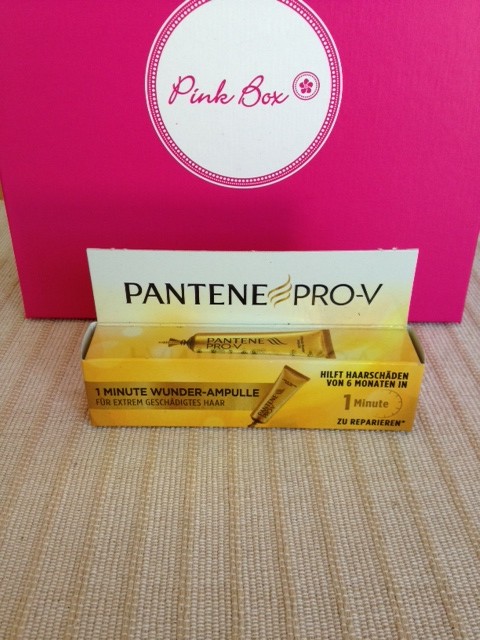 Von Pantene Pro-V ist das nächste Produkt. Es handelt sich um eine 1-Minute-Wunder-Ampulle, die verspricht, Haarschäden von sechs Monaten in einer Minute zu reparieren. Mit einem kleinen Sternchen versehen (*) steht dann aber auf der Rückseite der Verpackung: „Schäden an der Haaroberfläche werden geglättet!“ Mehr hätte ich auch nicht erwartet, denn ich halte grundsätzlich nix von so 1-mal-Wunder-Dingern. Man muss sein Haar halt IMMER gut pflegen, damit man nix „reparieren“ muss, was man meiner Meinung nach meist eh nur durch Abschneiden bewirkt 😉 Aber nun denn … ich werde das Ding mal anwenden und schauen, was es für mein Haar macht. Es handelt sich um eine Originalgröße, die im Laden 1,99 Euro kostet.