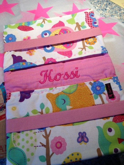 Geil ne? Wollt ihr auch haben? Tja, dann solltet ihr geschwind mal in den Shop von Sabrina schauen und vielleicht habt ihr auch bald einen neuen Umschlag. Natürlich nicht mit KOSSI drin, aber vielleicht mit EUREM Namen 😉 Und Sabrina hat auch noch einen zweiten Dawanda-Shop, bei dem ihr Stoffe und Zubehör kaufen könnt: KLICK