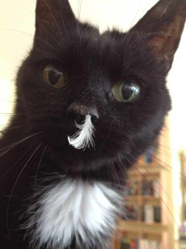 Ein sehr sehr sehr sehr alter Brauch besagt: Wenn eine Katze in der Silvesternacht an einem Kissen schnuppert und ihr dabei eine Feder an der Nase hängen bleibt und sie dann ganz erschrocken guckt, wenn sie fotografiert wird (und nur, wenn wirklich all diese Komponenten aufeinandertreffen!), wird das kommende Jahr einfach wundervoll werden. So richtig mit einer großen Portion Gesundheit, gewünschtem und auch unvorhergesehenem Glück, ganz viel Liebe, wunderschönen Büchern, tollen Menschen, aufregenden Erlebnissen und vielen anderen Dingen, die dieses Leben so lebenswert machen.