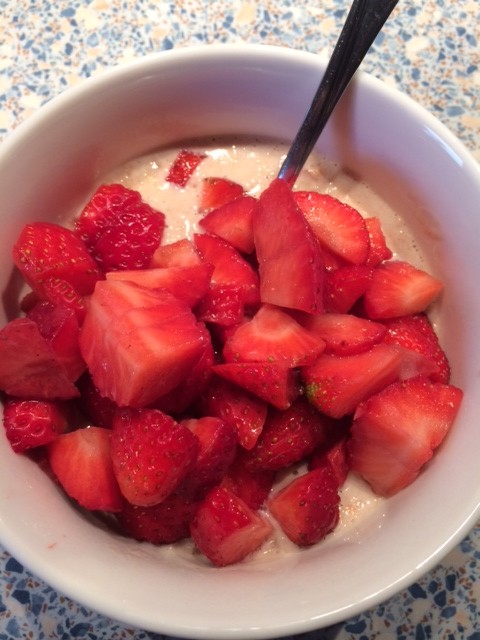 Also musste kräftig „getuned“ werden und es gab frische Erdbeeren und noch eine Banane, die schon aus dem Obstkorb schrie, dass sie weg will, dazu. Fragt nicht, wie pappsatt ich nach dieser Portion war. Ich glaube, ich muss drei Tage nix mehr essen. Oder … okay … doch … morgen … das nächste Porrdige.