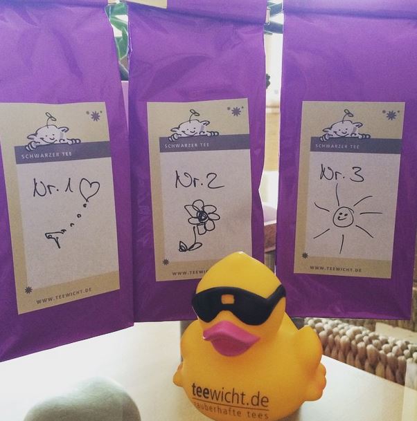 Ähm ja … ich habe für die Kossi-Sommerbox einen neuen „Kisses from Kossi“ geplant und ich hab dem Teewicht gesagt, was in dem jeweiligen Tee drin sein KÖNNTE. Der liebe Teewicht hat dann drei verschiedene Tees mischen lassen mit den von mir vorgeschlagenen Komponenten und ich entscheide nun, welcher der neue Kisses wird. Das Tolle: ich habe KEINE Ahnung, was genau nun in den Tees drin ist und analysiere voll rum und will alle Einzelteile rausschmecken!