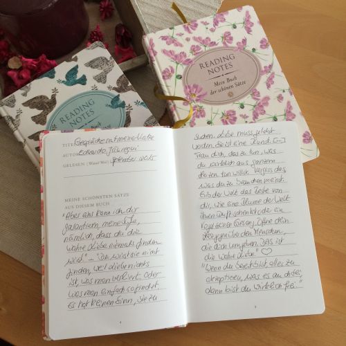 Ich habe gestern zum ersten Mal in mein eigenes „Buch der schönen Sätze“ geschrieben und es fühlte sich einfach nur WOW an! Es ist genau das, was mir seit Jahren im Kopf herum schwebte: ein Notizbuch, das explizit für diesen einen Grund gemacht ist: um schöne Sätze aus Büchern hineinzuschreiben! Man könnte also sagen, dass diese Bücher aus reinem Kossiismus/Egoismus veröffentlicht wurden 😂💕