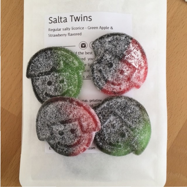 Auch Favoriten von mir: diese Twins! Beide empfand ich säuerlich-salzig-süß. Der grüne mit Apfelgeschmack, der rote mit Erdbeer. Konsistenz: chewie und kleben so schön an den Zähnen, lutscht man dann aber locker so weg hihi Abbeißen konnte ich sie schlecht, also hab ich mir direkt son ganzen Kopp in den Kopp geschoben. Die Mischung aus Lakritz, salz, sauer, süß und Weingummi ist ne totale Geschmacksexplosion! Geil!!